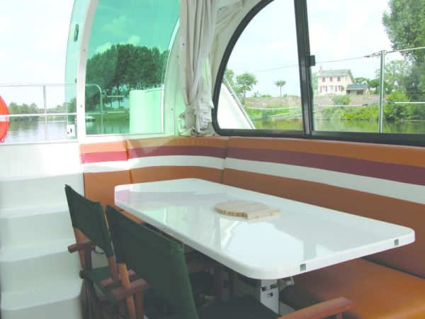 Tous nos Nicols 1100 disposent d’un second poste de pilotage à l’extérieur pour permettre aussi au capitaine de profiter de l’extérieur avec l’équipage.