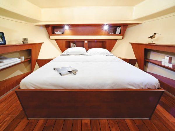 Avec sa grande cabine capitaine à la proue et les deux autres cabines, ce bateau peut accueillir confortablement une grande famille de 6 personnes ou trois couples d’amis.